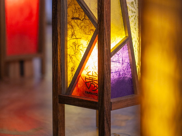 心中を組み合わせたシンプルなものから、五箇山和紙を使用したステンドグラス風のものまで、味わい深い個性的なランタンが皆様をお待ちしています。